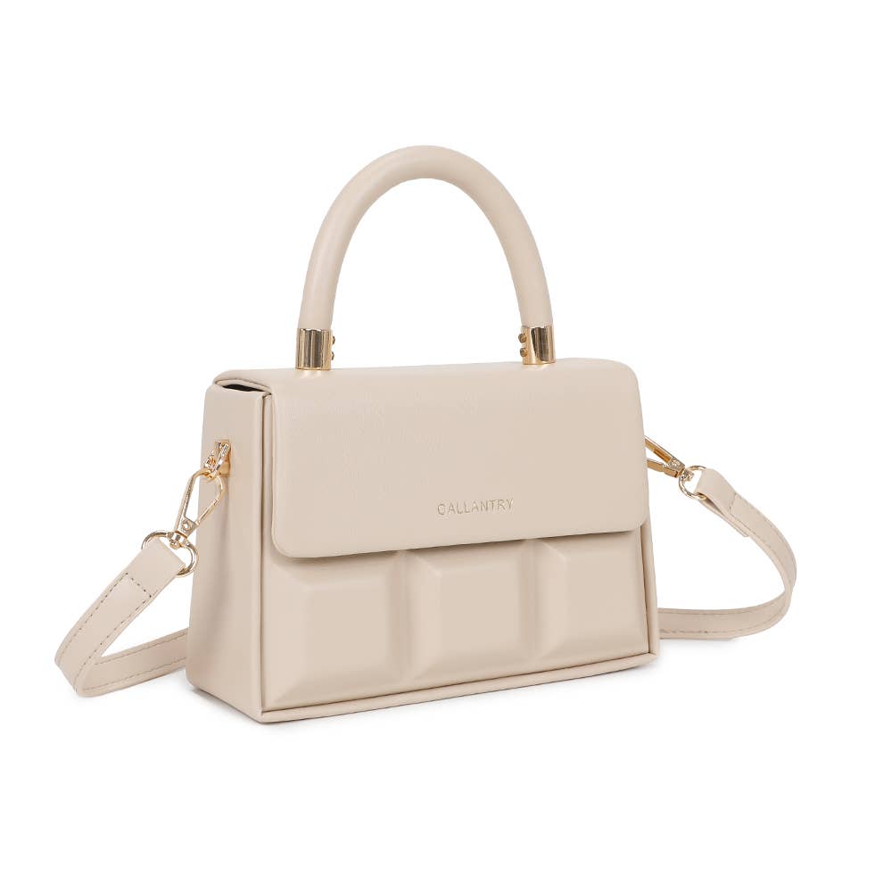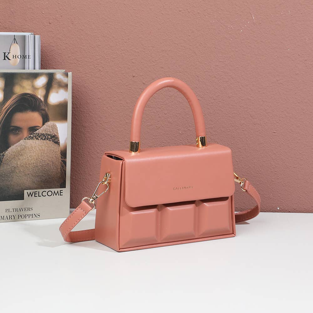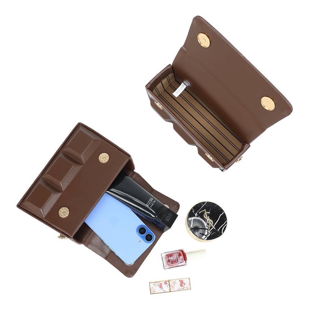 Laat je verleiden door de ChocoLuxe, een handtas die elegantie en originaliteit combineert. Geïnspireerd door de zachtheid van chocolade, doet het verfijnde geometrische design denken aan een stijlvolle chocoladereep – een speelse knipoog verpakt in pure luxe. Het gladde imitatieleer voelt zacht aan en wordt versterkt door gouden metalen details die de tas een chique, hoogwaardige uitstraling geven.