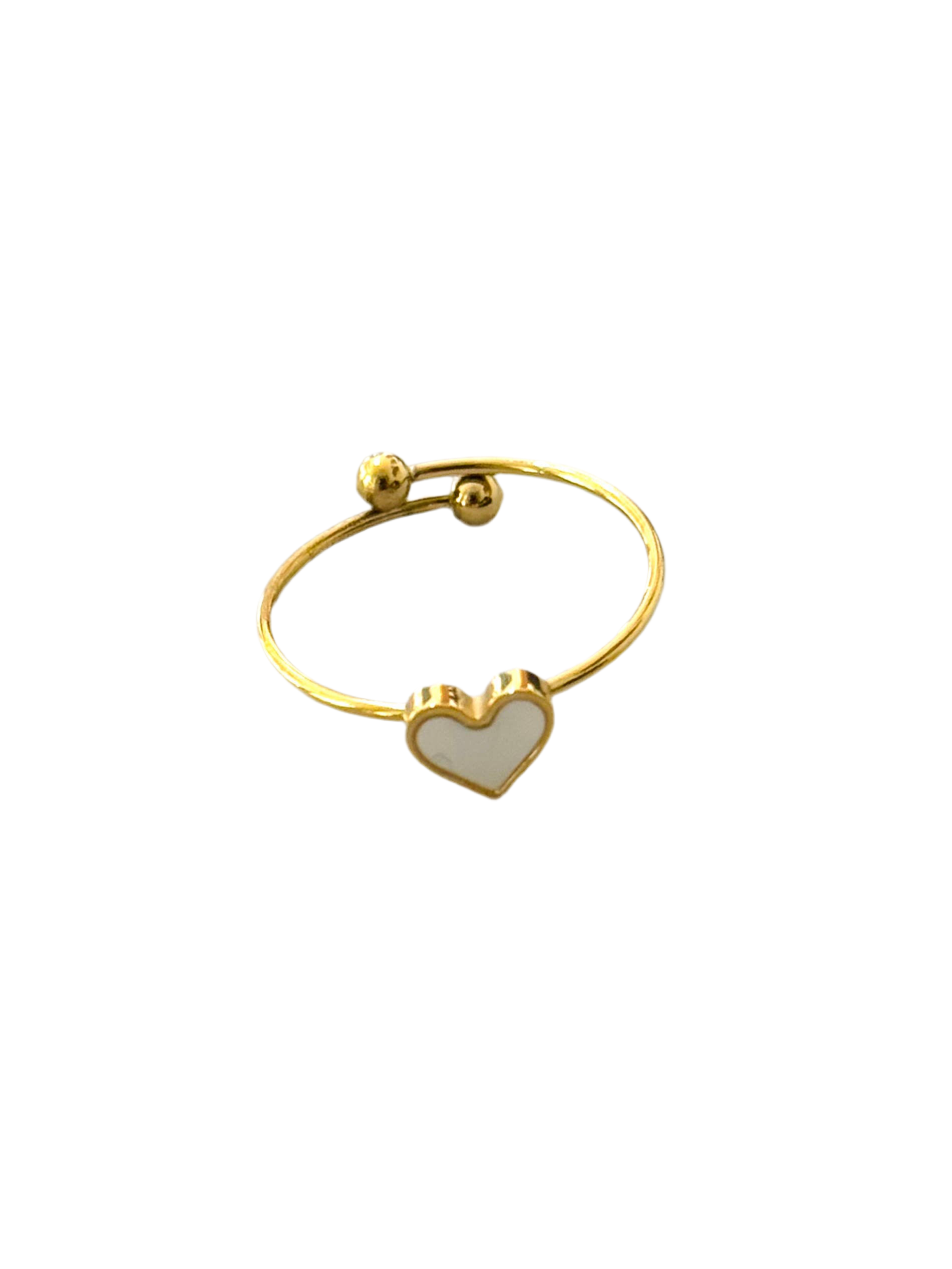 De Daphne ring is een subtiel en elegant sieraad dat moeiteloos liefde en verfijning uitstraalt. Het delicate hartje in wit emaille vormt een prachtig contrast met de warme gouden afwerking, waardoor deze ring zowel speels als stijlvol oogt. Dankzij het minimalistische design laat hij zich perfect combineren met andere ringen of solo dragen als een betekenisvol statement.