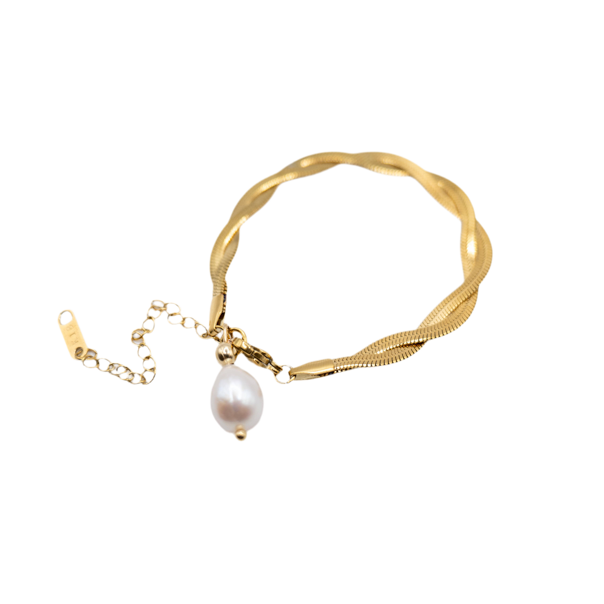 Slangenarmband van 18K verguld roestvrij staal en natuurlijke zoetwaterparel.
